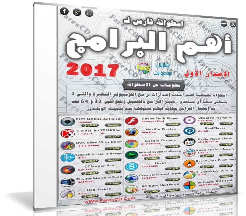 البرامج الموجودة فى اسطوانة فارس لـ أهم البرامج 2017 الإصدار الأول :