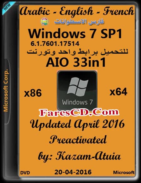 نسخة سفن مجمعة Windows 7 SP1 AIO بتحديثات إبريل 2016 وبـ 3 لغات (1)