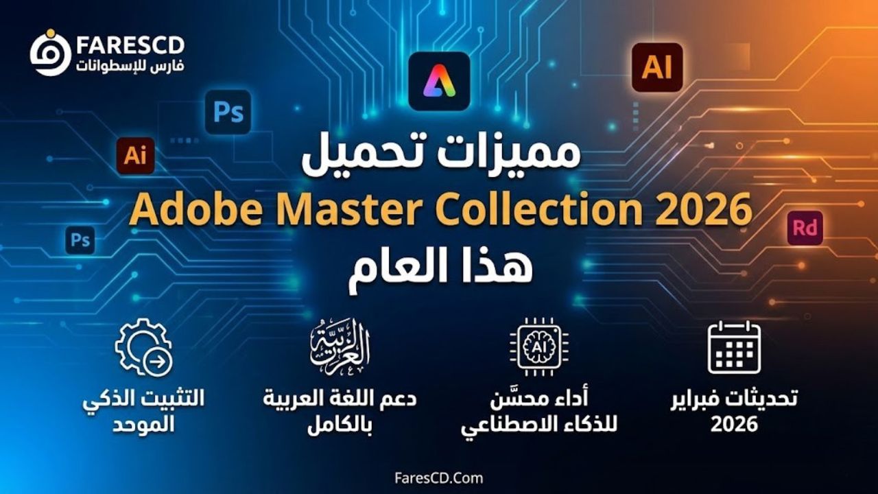 في هذا المقال الشامل، نقدم لك الحل النهائي: تحميل Adobe Master Collection 2026، التجميعة الأقوى والأحدث التي تضم كافة برامج شركة أدوبي العملاقة في ملف واحد، مفعلة مسبقاً وجاهزة للعمل فوراً على نظامك. دعنا نستعرض سوياً محتويات أسطوانة أدوبي الشاملة 2026، مميزاتها الجديدة، وطريقة التحميل والتثبيت الصحيحة لضمان عمل البرامج مدى الحياة.