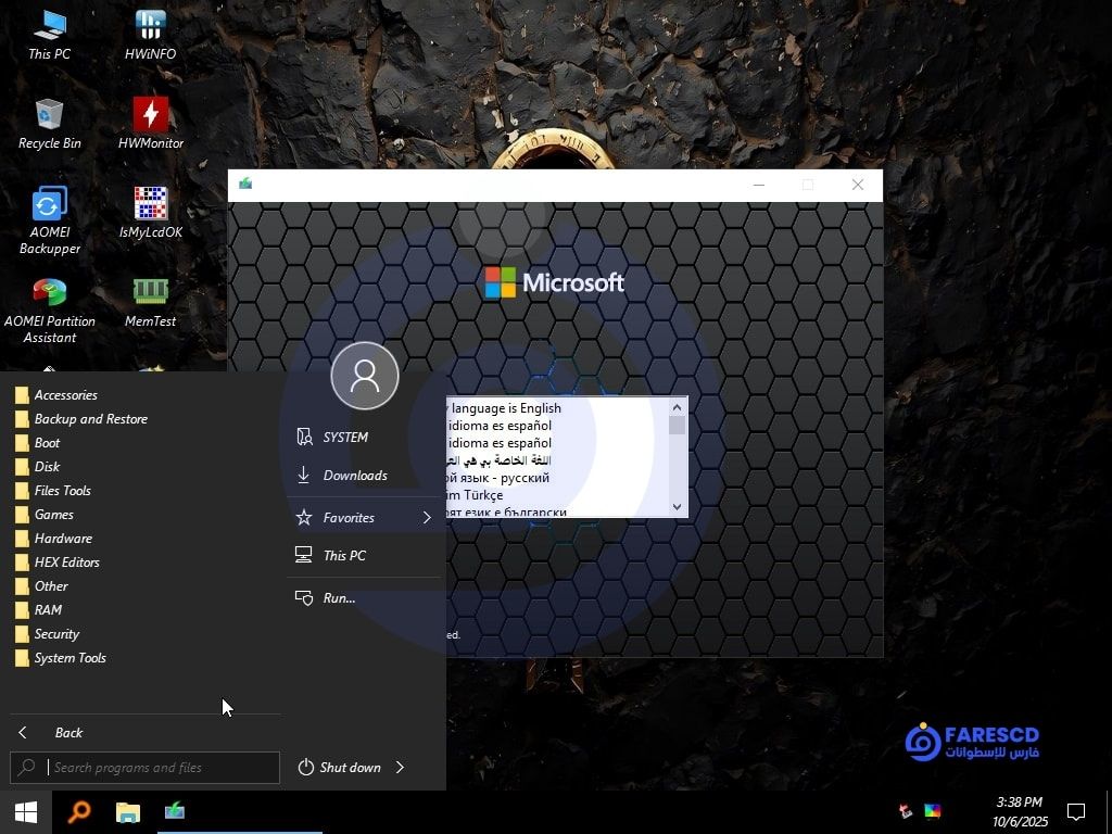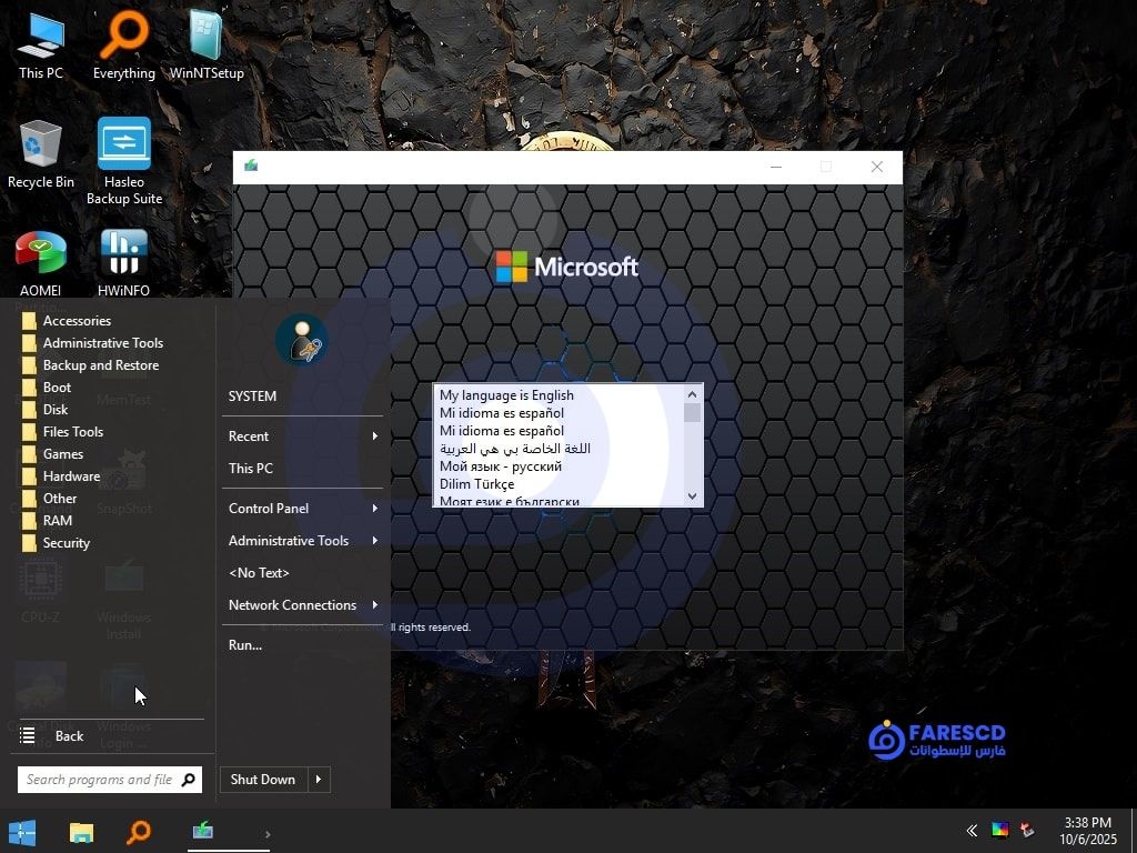 ستدخل إلى واجهة Ankh Tech Windows Boot الشبيهة بويندوز مع قائمة ابدأ ومستكشف الملفات.