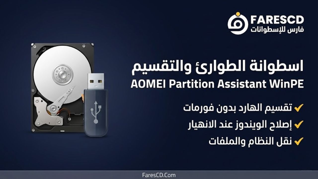 اسطوانة الطوارئ AOMEI Partition Assistant WinPE | الحل السحري لإصلاح وتقسيم الهارد عند انهيار الويندوز