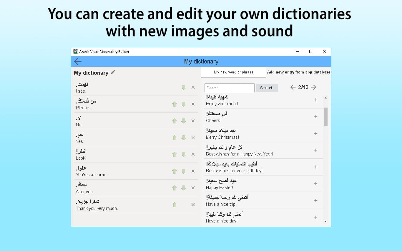 - نطق أصلي: يتم نطق كل كلمة وعبارة بواسطة متحدثين أصليين للغة العربية، مما يساعد على تحسين النطق واللفظ الصحيح.
