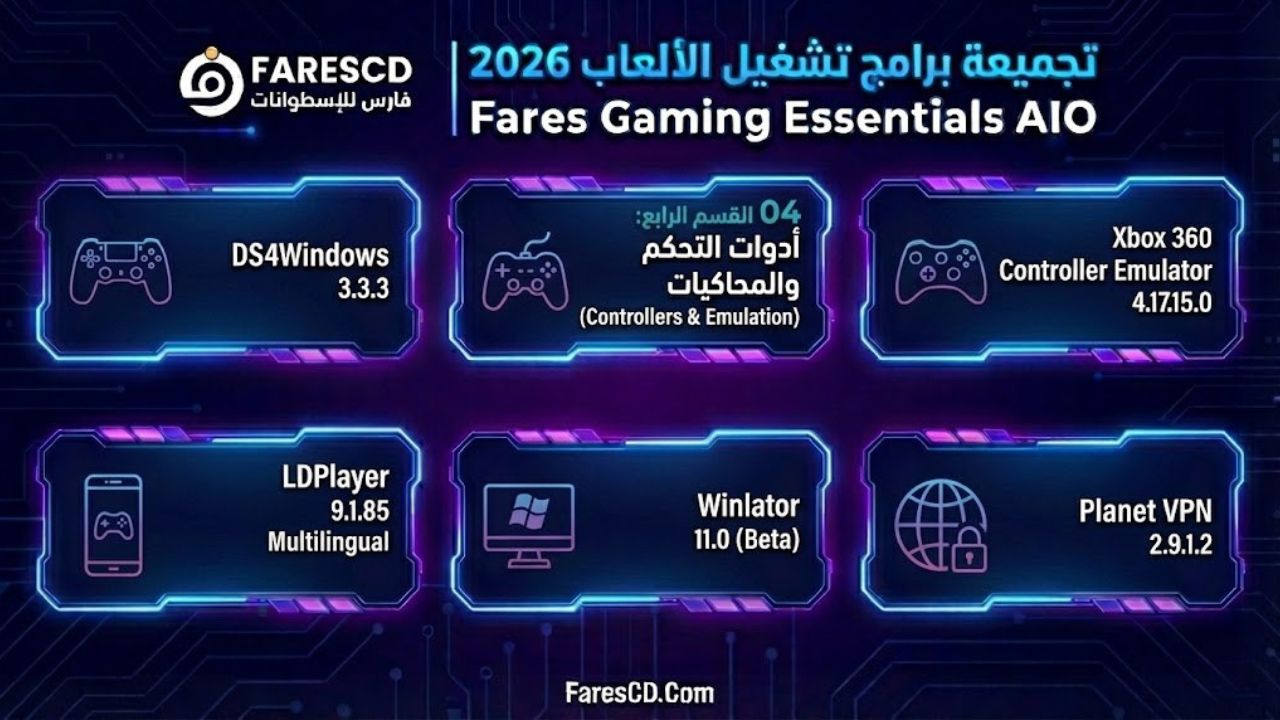 Fares Gaming Essentials AIO – كل ما تحتاجه في مكان واحد، بتحديثات 2026، لتجربة ألعاب مثالية على أي جهاز!