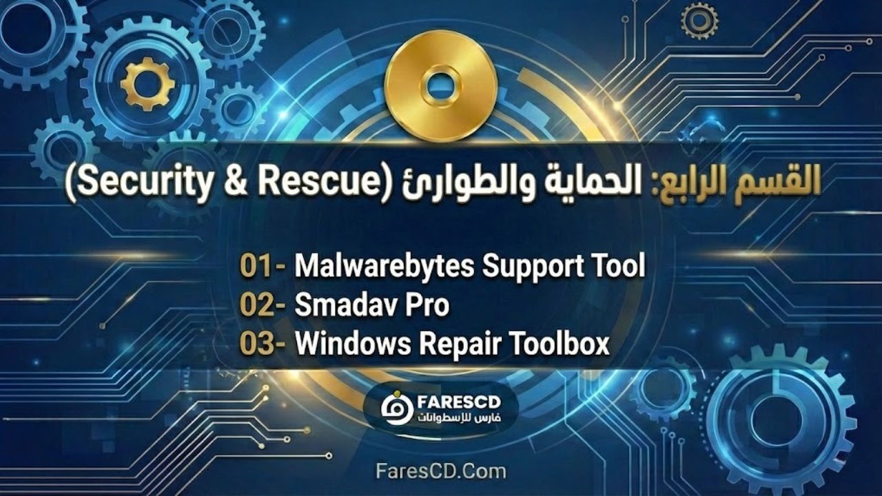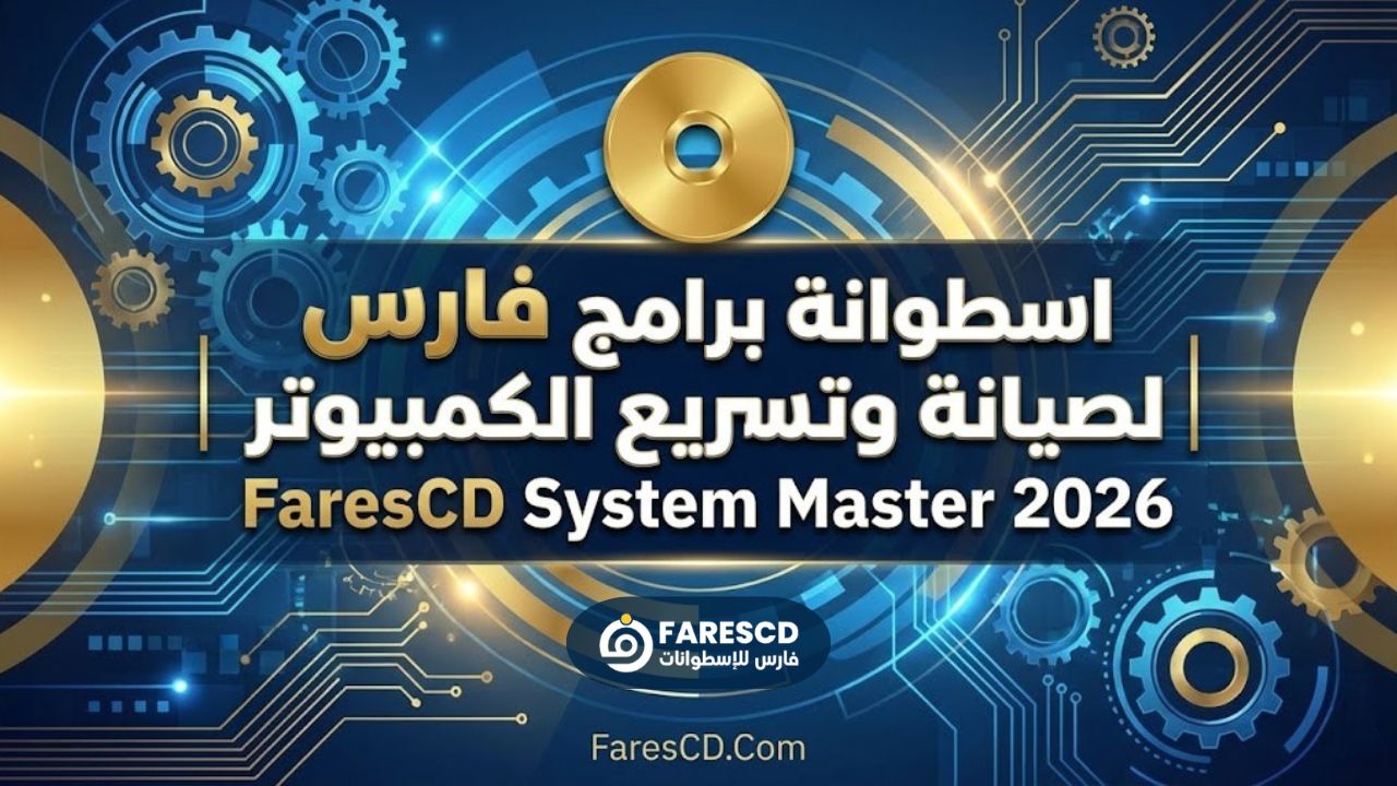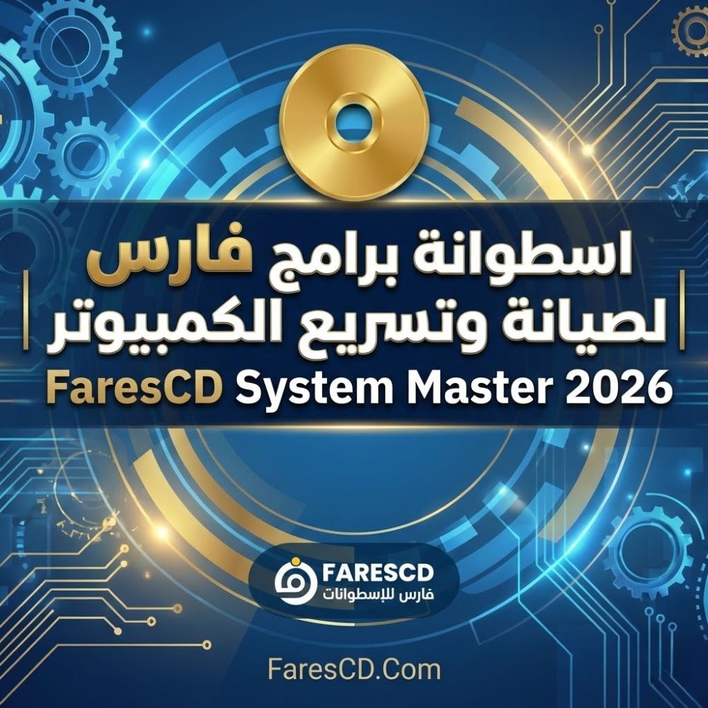 اسطوانة برامج فارس لصيانة وتسريع الكمبيوتر | FaresCD System Master 2026 تطل عليكم في إصدارها الأحدث والأكثر تطوراً، لتمثل الحل الجذري والشامل لكل مشاكل الحواسيب الحديثة والقديمة. إن كنتم تبحثون عن الأداة التي تجمع بين قوة الأداء، حداثة البرامج، وشمولية الأدوات، فقد وجدتم ضالتكم. هذه الأسطوانة صممت خصيصاً لتكون رفيق درب كل فني صيانة ومستخدم يطمح لتحويل جهازه إلى منصة عمل فائقة السرعة، خالية من الأخطاء، ومجهزة بأحدث التعريفات وبرامج الحماية لعام 2026.