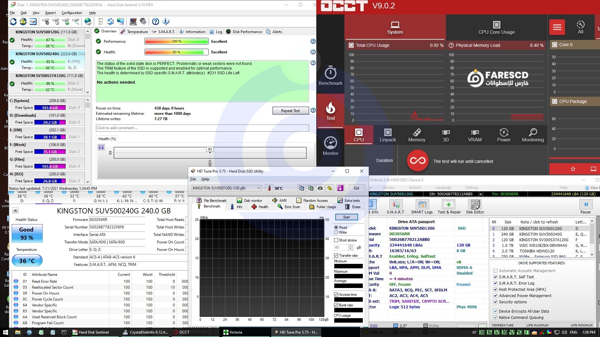 Victoria & HDD Sentinel: لفحص صحة الهارد وكشف القطاعات التالفة (Bad Sectors) ومحاولة معالجتها أو عزلها.