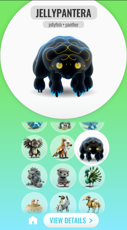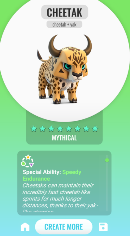 - شاهد السحر: يقوم الذكاء الاصطناعي بدمج الصفات والمظهر والقدرات الخاصة للحيوانين المختارين، ليولد مخلوقاً جديداً تماماً.
