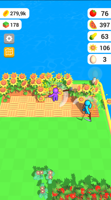 قم ببيع المحاصيل والمنتجات الحيوانية لتربح عملات، واستثمرها في تطوير المزرعة. -