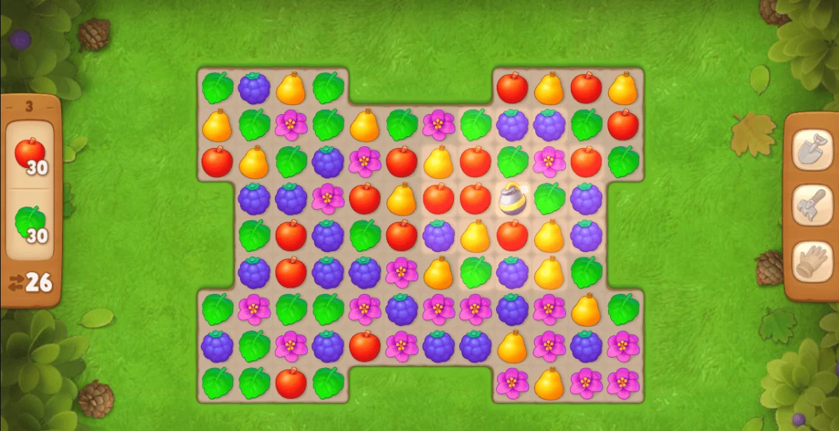 اللعبة الكلاسيكية هي ثلاثة في صف واحد تحتاج فيها إلى تحريك الفواكه في صف واحد .