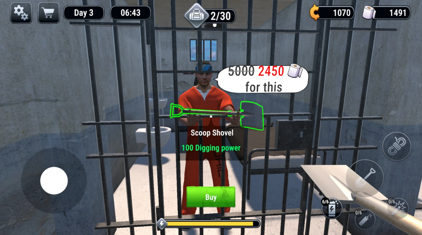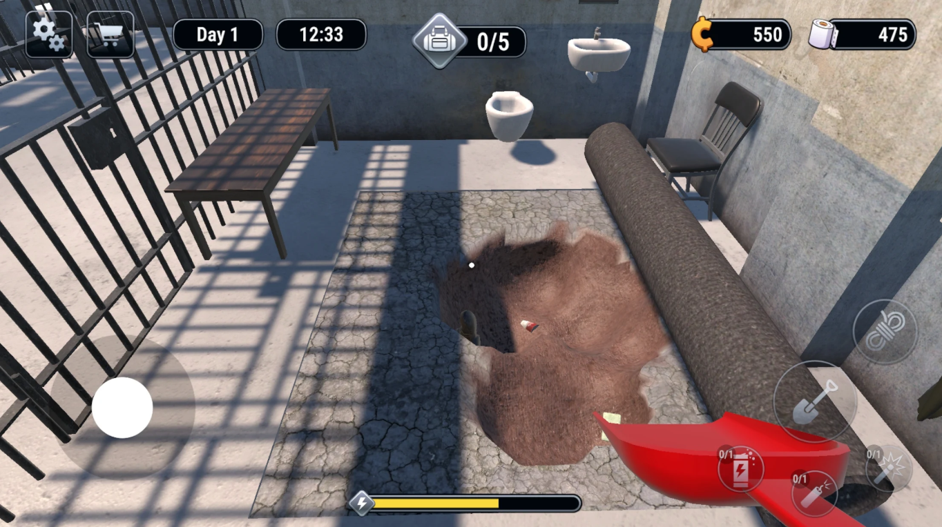 هذا هو جوهر اللعبة. في البداية، ستقوم بإزاحة السجادة في زنزانتك لتبدأ الحفر باستخدام أدوات بدائية.