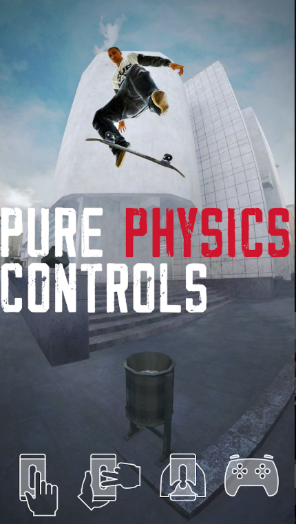 أهم ما يميز اللعبة هو نظام التحكم. أصابعك هي “أقدام” المتزلج. لتحريك اللوح، يجب عليك دفع الأرض بإصبعك بجانب اللوح. للقيام بحركة “Ollie” (القفزة الأساسية)، تضرب ذيل اللوح بإصبعك ثم تمسح بإصبع آخر لتوجيه اللوح في الهواء. هذا النظام يمنحك حرية مطلقة، فنجاح الحركة يعتمد على توقيتك وزاوية وسرعة حركة إصبعك، تماماً كما في الواقع.