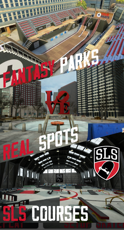 Stairs: للقفزات الجريئة. تتوفر ساحات تزلج إضافية مشهورة عالمياً (مثل The Berrics و SLS) ولكنها غالباً ما تتطلب شراءً إضافياً من داخل التطبيق.