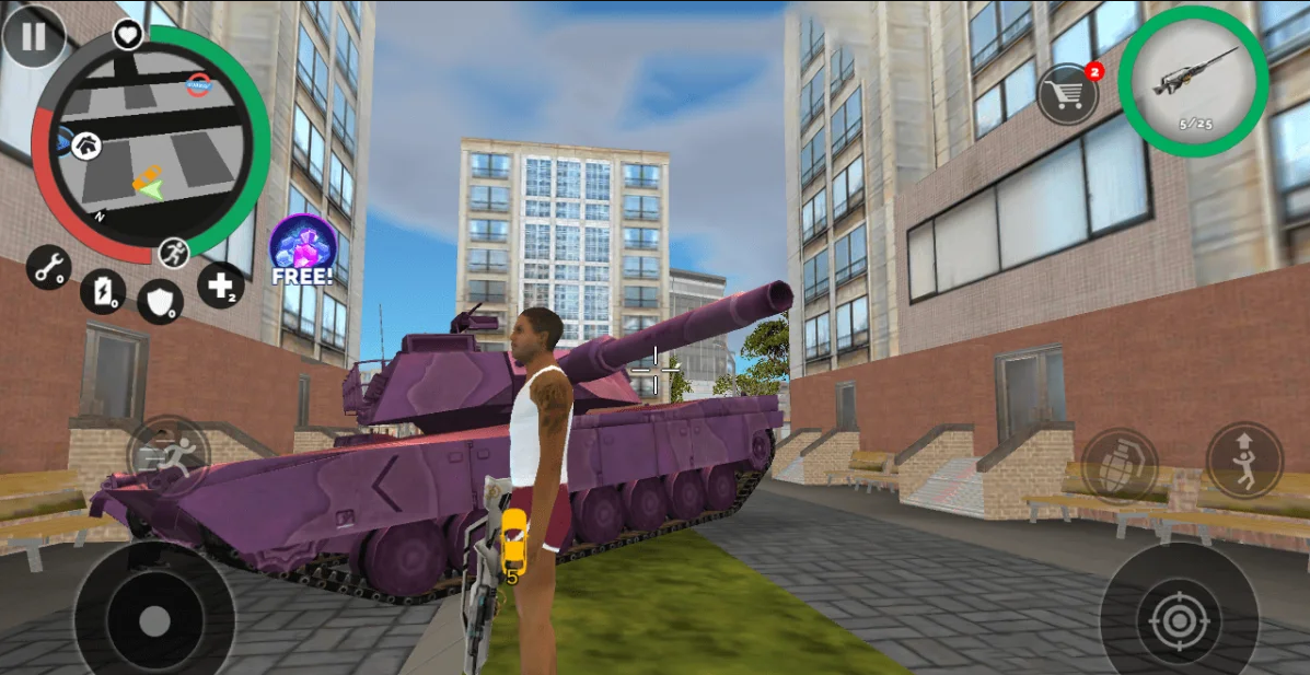 - تشكيلة واسعة من الأسلحة والمركبات: تقدم اللعبة مجموعة متنوعة من الأسلحة، مثل المسدسات والبنادق، بالإضافة إلى مركبات متنوعة كالسيارات، والدراجات النارية، وحتى الطائرات.