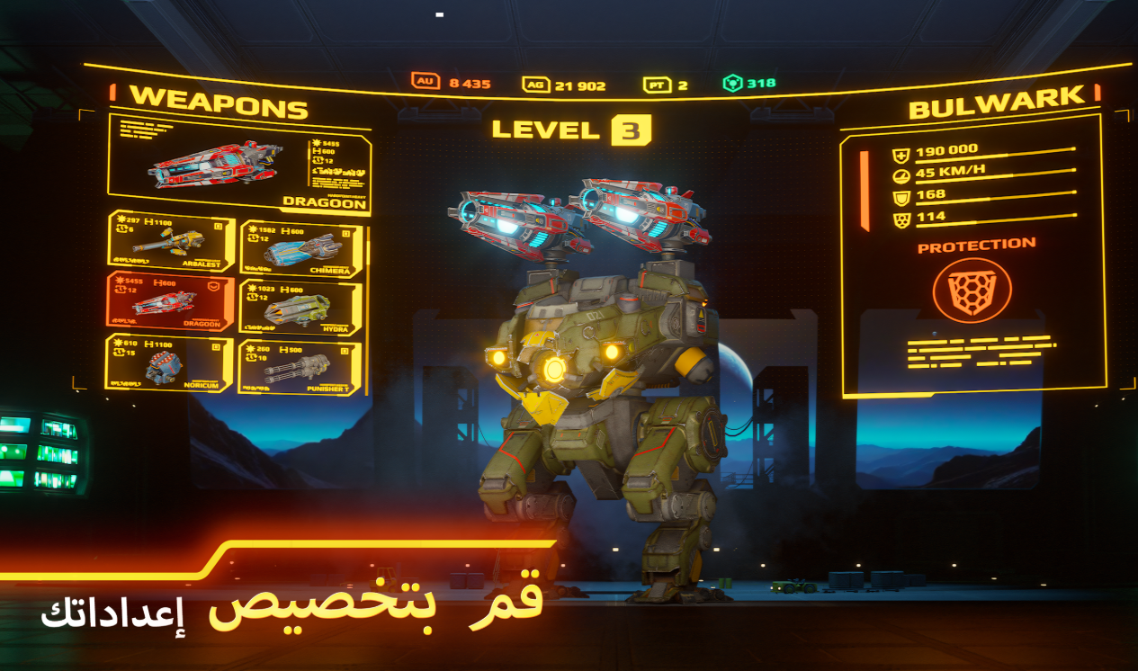 يمكنك ترقية الروبوتات والأسلحة الخاصة بك، مما يتيح لك تحسين أدائها وقوتها في المعركة. كما يمكنك دمج أنظمة الحماية والتسريع لتعزيز فرصك في الفوز.