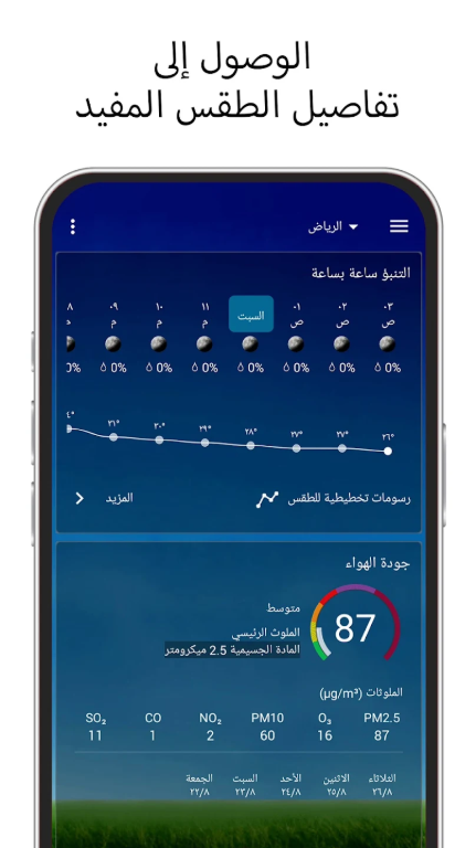 تفاصيل جوية عميقة: لا يكتفي بدرجة الحرارة، بل يعرض: