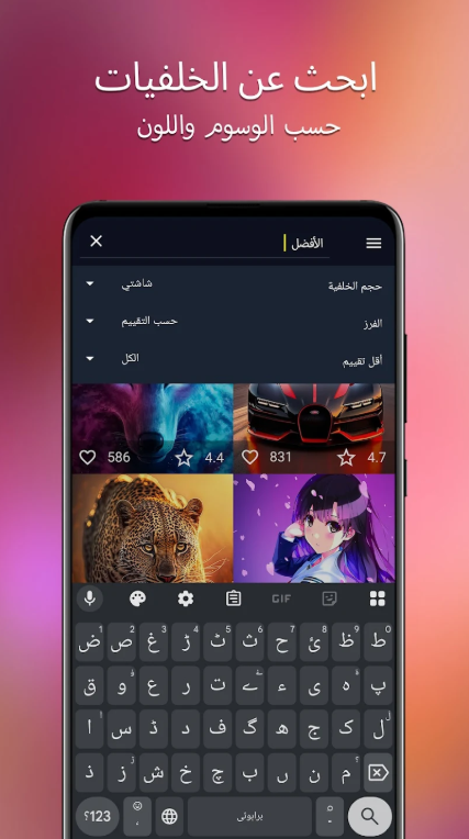 يوفر التطبيق نظام بحث لوني مبتكر.