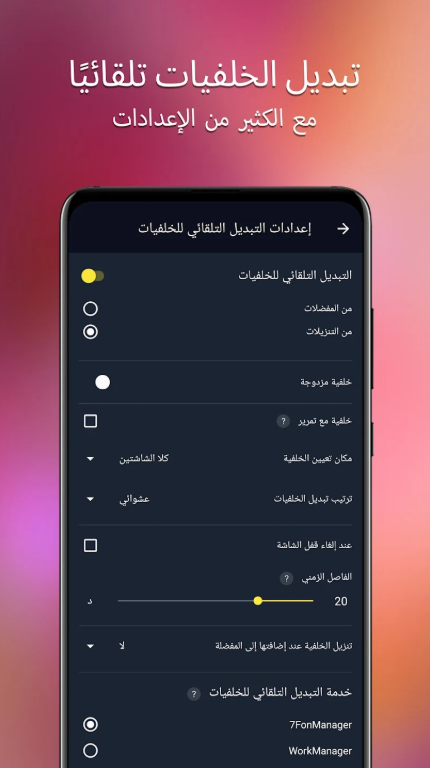 سيقوم التطبيق بتغيير خلفية الشاشة وتجديدها تلقائياً دون أي تدخل منك، مما يمنح هاتفك روحاً جديدة باستمرار.