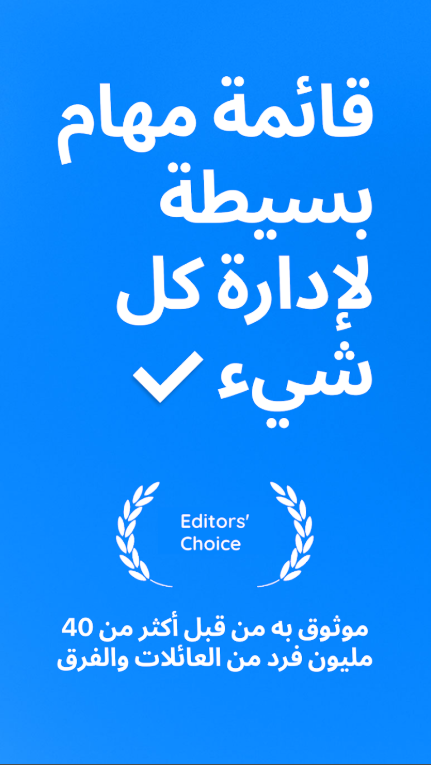 • اتبحث عن المزيد؟ أضف عنصر قائمة المهام مباشرة من صندوق البريد الإلكتروني الخاص بك عن طريق إعادة توجيه [email protected]. قم بإرفاق الملفات من جهاز الكمبيوتر الخاص بك، أو Dropbox، أو Google Drive إلى مهامك. طباعة وتصدير ومشاركة قوائم البقالة والمهمات اليومية الخاصة بك. لا تنس أبدًا معاودة الاتصال بالأصدقاء أو أفراد العائلة أو زملاء العمل بفضل ميزة التذكير الفريدة بالمكالمات الفائتة.