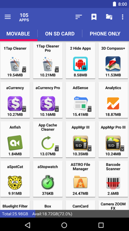 • إدارة التطبيقات: يتيح لك AppMgr Pro III إدارة التطبيقات عن طريق إيقاف تشغيلها أو إلغاء تثبيتها أو نقلها إلى بطاقة SD.