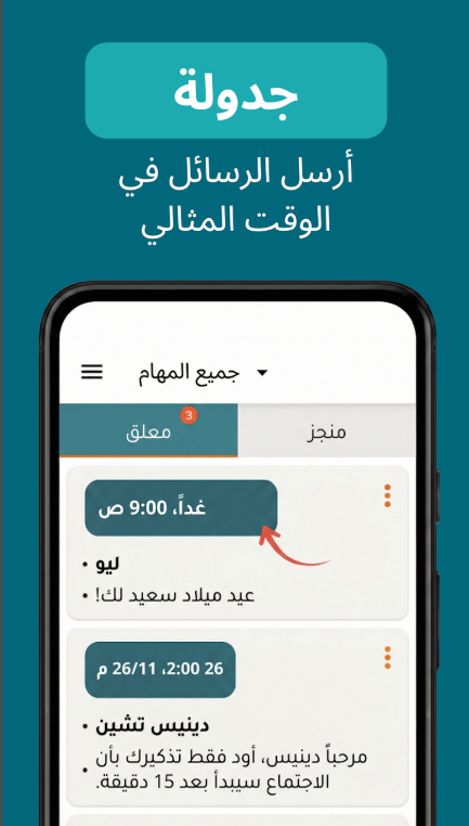 الجدولة – أرسل رسالة نصية – نص تذكير