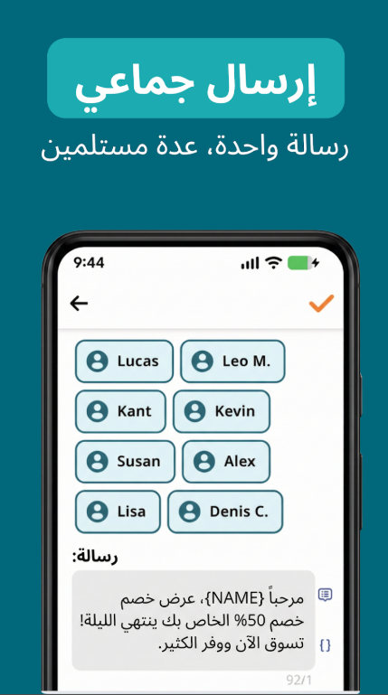 • سهولة إرسال رسائل مجمعة إلى جهات اتصال متعددة.