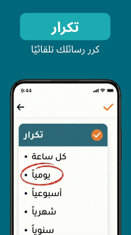 • إرسال رسائل متكررة بخيارات متكررة متنوعة (على سبيل المثال كل 15 دقيقة ، أسبوعيًا ، شهريًا).