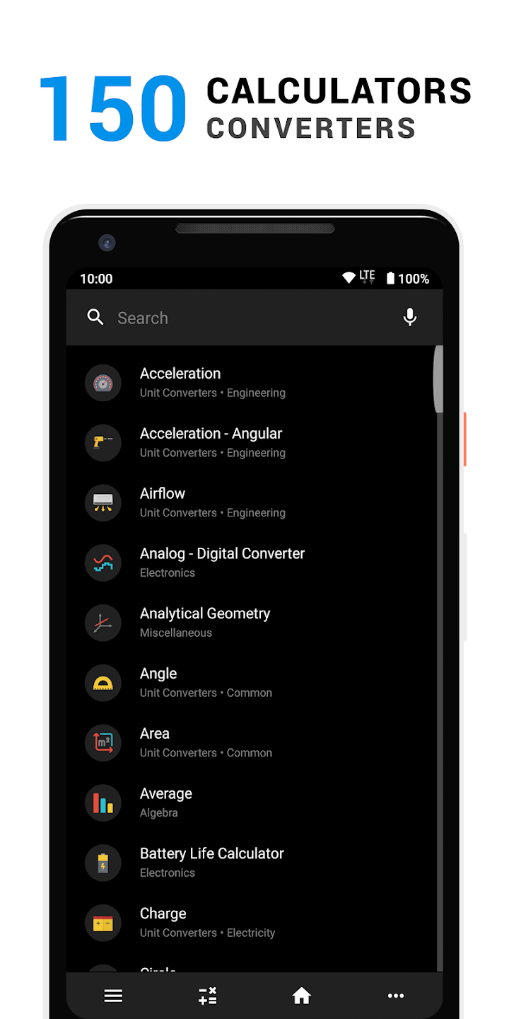 من العمليات الحسابية البسيطة والمعقدة إلى تحويلات الوحدات والعملات والنسب المئوية والمساحات والأحجام والمزيد.