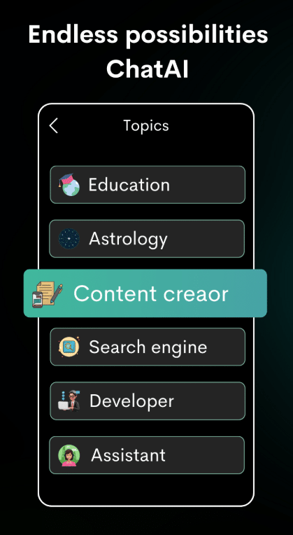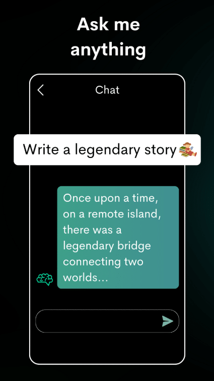 تمتع بإمكانية الوصول إلى معلومات متنوعة في مجالات مختلفة، مثل العلوم والتاريخ والرياضة والأدب. - إبداع بلا حدود: اطلب من التطبيق كتابة قصص أو قصائد أو سيناريوهات أو أي محتوى إبداعي آخر.