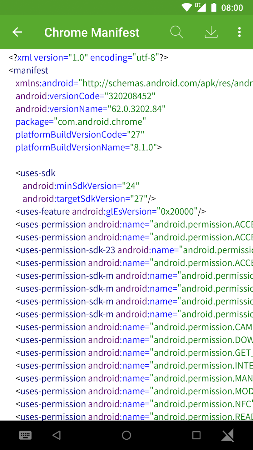 - استعرض ملفات التطبيقات المثبتة على هاتفك، بما في ذلك ملفات المصدر، الموارد، والتصاريح.