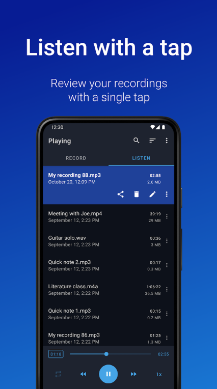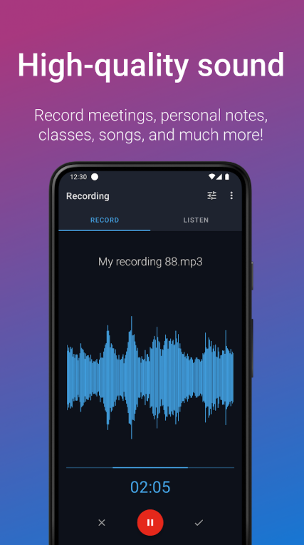 التسجيل في الخلفية: يمكنك تسجيل الصوت في الخلفية أثناء استخدام تطبيقات أخرى.