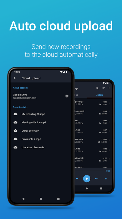 التكامل مع السحابة: يمكنك حفظ تسجيلاتك الصوتية في خدمات التخزين السحابية مثل Google Drive و Dropbox.