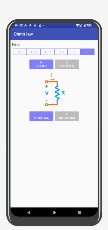 Ohm’s law: قانون أوم (الحاسبة الأساسية للعلاقة بين الفولت والتيار والمقاومة).