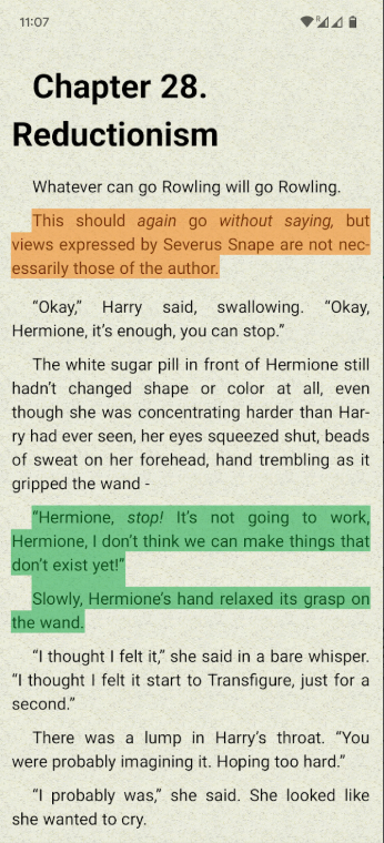 - الترجمة المدمجة: يوفر التطبيق تكاملًا مع ترجمة Google و Yandex، مما يسمح لك بترجمة الكلمات والعبارات في الكتب الإلكترونية دون مغادرة التطبيق.