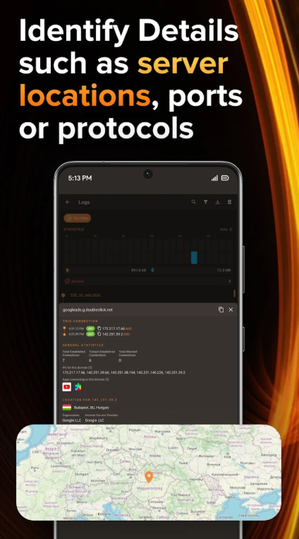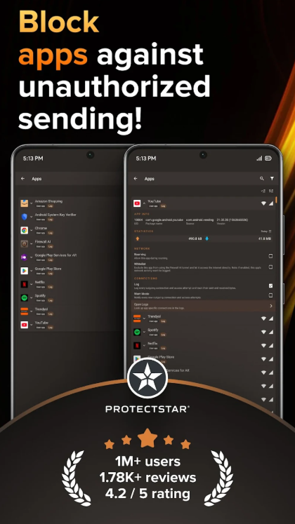 • استمتع بحماية لا مثيل لها من خلال أداة حظر التطبيقات التي لا تحتوي على جذر وجدار الحماية وكاشف مكافحة التجسس، والمصممة لأجهزة Android ذات واجهة سهلة الاستخدام. يحظر نظامنا الذكي الوصول إلى التطبيقات غير المرغوب فيها، مما يوفر رؤى في الوقت الفعلي حول التطبيقات التي تتصل بالخوادم أو تستهلك بيانات الهاتف المحمول.