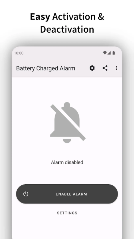 - ضبط التنبيهات المخصصة: يتيح لك التطبيق ضبط تنبيهات مخصصة بناءً على نسبة الشحن التي ترغب في الحصول عليها، مما يساعد في تلقي تنبيهات مبكرة قبل الوصول إلى الشحن الكامل.