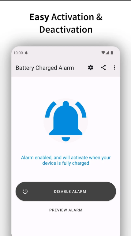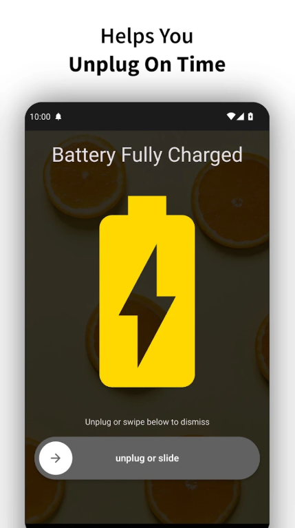 - تنبيه الشحن الكامل: يوفر التطبيق تنبيهًا عندما تصل بطارية هاتفك إلى مستوى الشحن الكامل، مما يساعد في تجنب شحن البطارية بشكل زائد والحفاظ على صحة البطارية.
