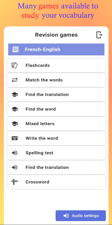 يمكن أن يساعد هذا التطبيق أيضًا كمدرب مفردات. لمساعدتك في تعلم كلمات القاموس الخاص بك وحفظها ، يحتوي “قاموسي الشخصي” على عدة ألعاب