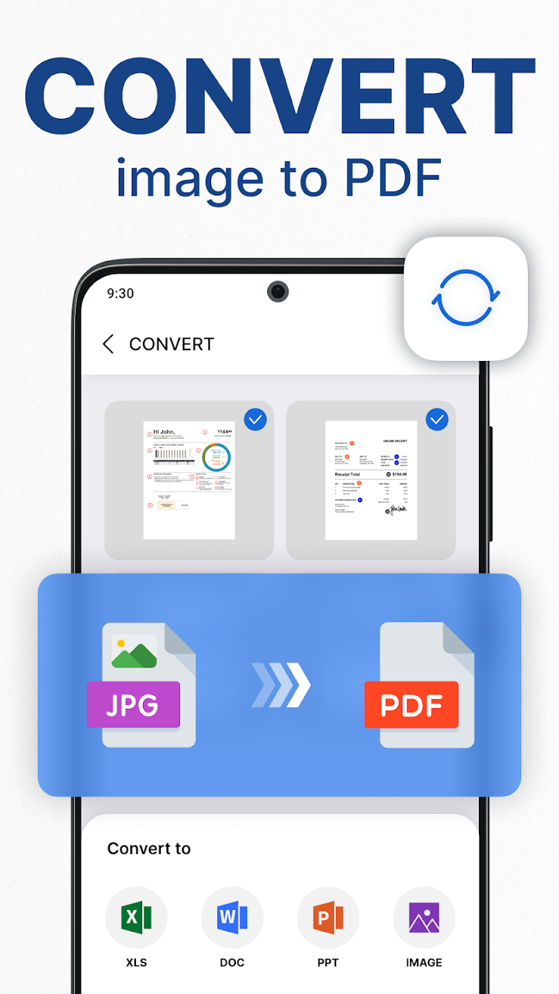 يمكن للمسح الضوئي إلى PDF تحويل أي صورة إلى ملف PDF ببضع نقرات. قم بتنزيل Scan to PDF لترتيب مستنداتك! مستندات PDF المحفوظة على جهازك باستخدام تطبيق الماسح الضوئي للمستندات لنظام Android جاهزة للاستخدام مع الماسح الضوئي للمستندات.