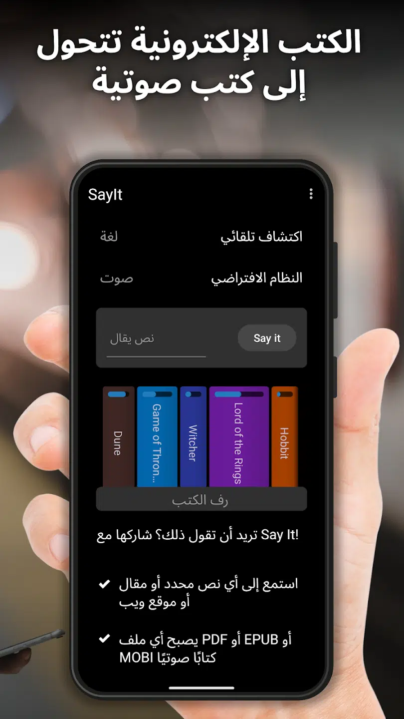 تحميل تطبيق SayIt النسخة الكاملة | أرح عينيك واقرأ المقالات والكتب بأذنيك