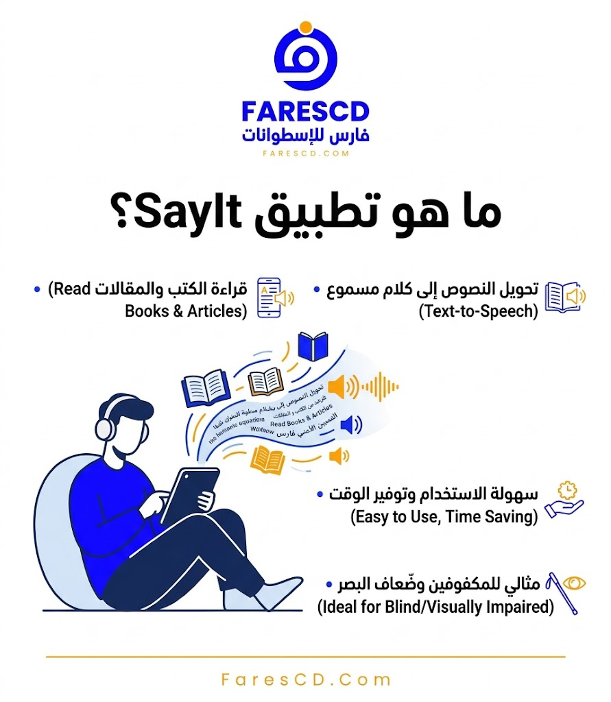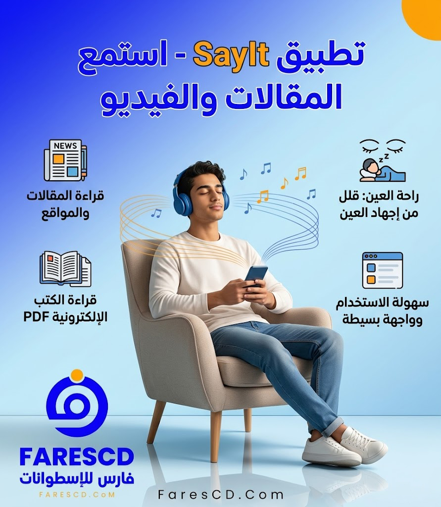سواء كنت تقود سيارتك، أو تنجز أعمالك، أو ترغب فقط في إراحة نظرك بعد يوم مجهد، فإن خطوة تحميل تطبيق SayIt ستمنحك حرية “قراءة” محتواك المفضل بأذنيك وفي أي وقت. تابع السطور القادمة لتعرف كيف سيسهل هذا التطبيق حياتك، وكيف يمكنك تثبيته والبدء في استخدامه بخطوات بسيطة.