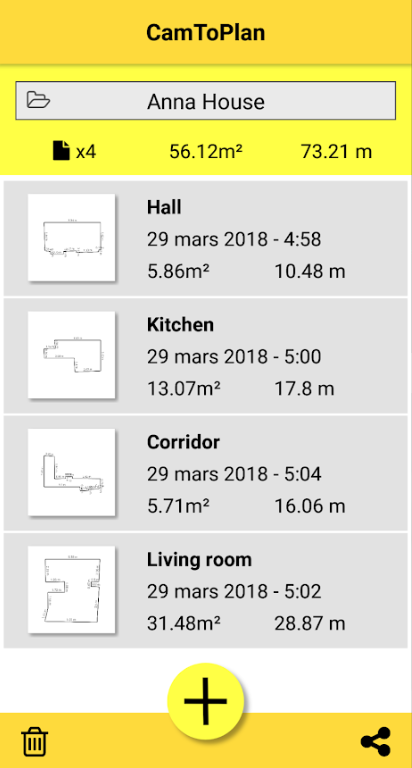 هذه ميزة “القاتل” (Killer Feature) في النسخ البريميوم. بدلاً من قياس كل جدار وتسجيله في ورقة، يقوم التطبيق برسم مخطط هندسي للغرفة تلقائياً أثناء تحركك بالكاميرا، ويحسب المحيط والمساحة فورياً.