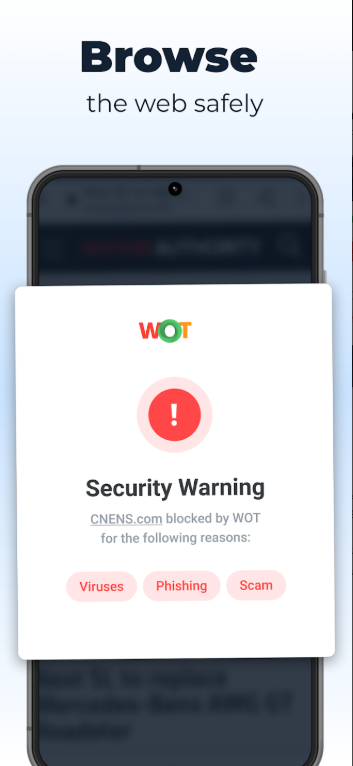 قم بحماية نفسك وأجهزتك من التهديدات عبر الإنترنت باستخدام تطبيق WOT Mobile Security. يحظى هذا التطبيق بثقة أكثر من مليوني شخص، حيث ستتمكن من الوصول إلى ميزات الأمان مثل فحص الجهاز بحثًا عن الفيروسات المشابهة لمنظف الفيروسات وتنبيهات التصفح الآمن لتجنب مواقع الويب غير الآمنة والحماية الكاملة للهوية.