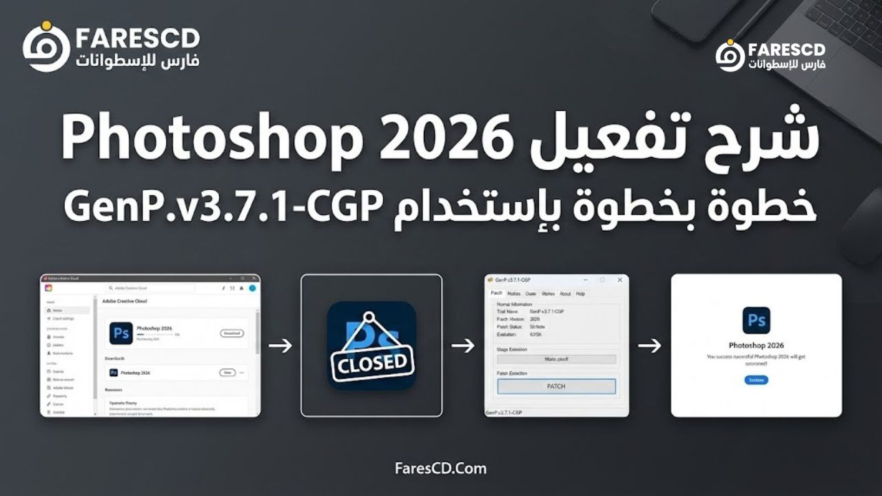 شرح تفعيل فوتوشوب Photoshop 2026 خطوة بخطوة بإستخدام أداة GenP.v3.7.1-CGP