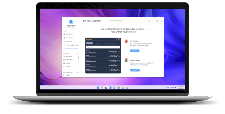 إضافات Abelssoft KeyDepot 2026 للمتصفح توفّر تعبئة تلقائية وتسجيل دخول بنقرة واحدة، بحيث تتعرّف الإضافة على حقول اسم المستخدم وكلمة المرور في المواقع المدعومة وتملأها فوراً من خزنتك المشفّرة، ما يختصر وقت الدخول اليومي ويقلّل أخطاء النسخ واللصق اليدوي. تعمل الإضافة بتناغم مع التطبيق المكتبي عبر المزامنة، فتظهر أحدث بياناتك دائماً داخل المتصفح مع الحفاظ على تشفير قوية للخزنة ومرور آمن أثناء النقل، ما يضمن مزيج السرعة والموثوقية في بيئة العمل أو التصفح الشخصي.