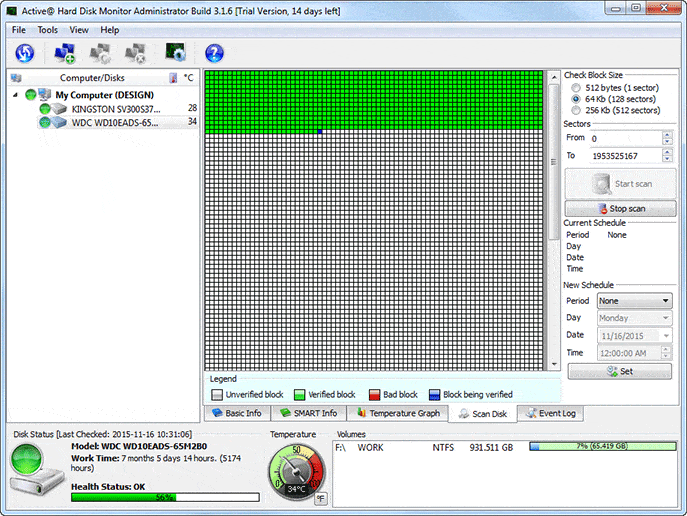 Active Hard Disk Monitor هو برنامج قوي وشامل لمراقبة صحة القرص الصلب الخاص بك. يوفر لك البرنامج معلومات مفصلة عن حالة القرص الصلب ، بما في ذلك درجة الحرارة ، والأداء ، وعدد القطاعات التالفة. كما يقوم البرنامج بتنبيهك في حالة وجود أي مشاكل محتملة ، مما يمنحك الوقت الكافي لاتخاذ الإجراءات اللازمة لحماية بياناتك.