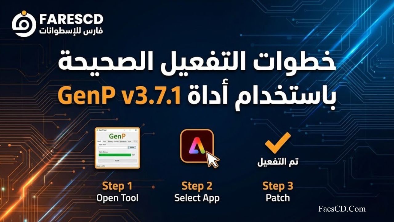 تعتبر أداة GenP (الجيل الجديد) واحدة من أقوى وأذكى أدوات تفعيل منتجات أدوبي، حيث تعتمد على فحص ملفات النظام وتعديلها تلقائياً دون الحاجة لنقل ملفات الكراك يدوياً.