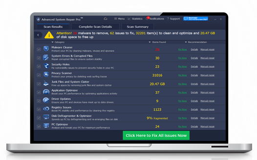 برنامج Advanced System Repair Pro هو الحل الشامل لتحسين أداء جهاز الكمبيوتر وتنظيف النظام من الملفات غير الضرورية والبرامج الضارة التي تبطئ عمله. يجمع البرنامج بين أدوات الصيانة المتقدمة والتقنيات الذكية ليمنحك جهازًا أسرع، أنظف وأكثر استقرارًا بضغطة زر واحدة فقط.