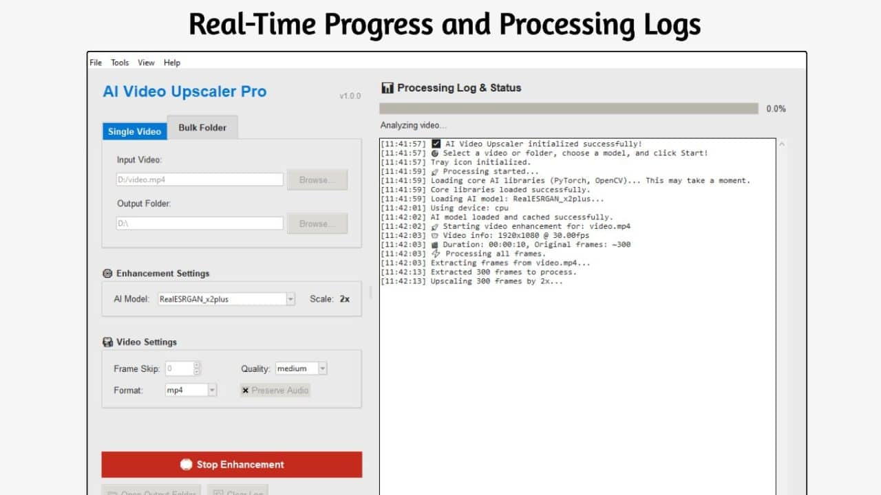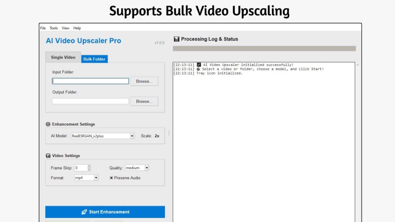 برنامج AI Video Upscaler Pro هو أداة احترافية مخصصة لتحسين جودة الفيديوهات باستخدام تقنيات الذكاء الاصطناعي الحديثة، وتُعد خيارًا مثاليًا للمصممين، صناع المحتوى، والمونتيرين الذين يبحثون عن نتائج فائقة في الدقة والوضوح.