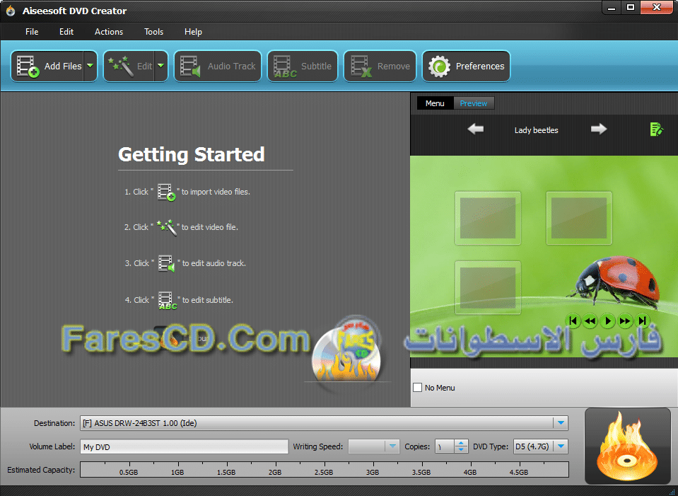 1. إنشاء أقراص DVD من مختلف تنسيقات الفيديو