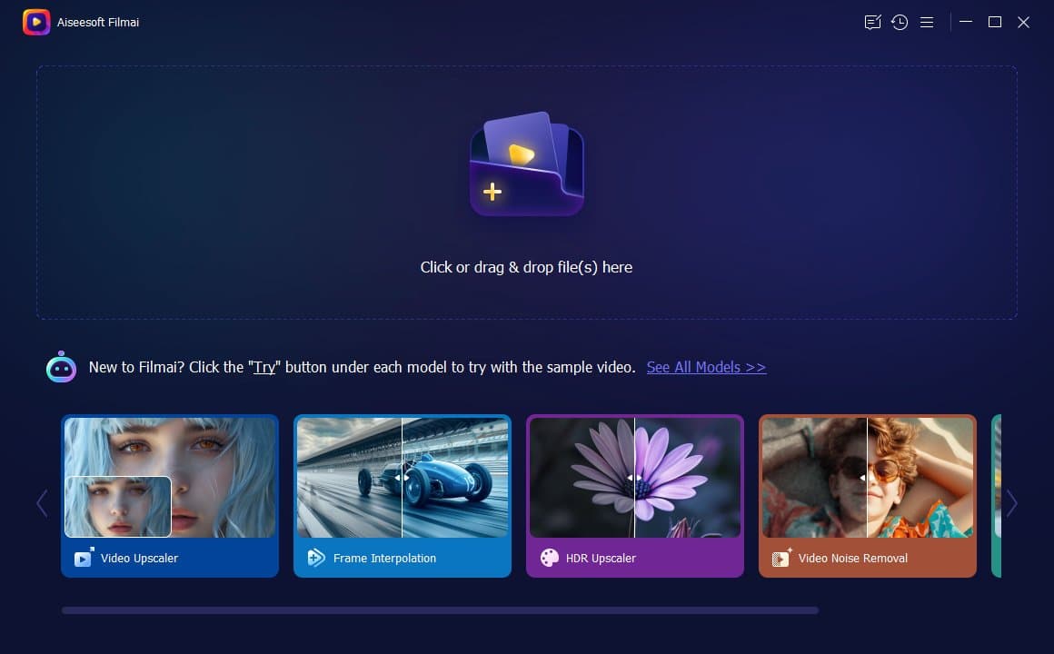 هل تشعر بخيبة أمل من جودة فيديوهاتك؟ هل ترغب في تحويل فيديوهاتك القديمة إلى تحف فنية؟ Aiseesoft Filmai هو الحل المثالي لك! بفضل تقنيات الذكاء الاصطناعي المتقدمة، يقدم هذا البرنامج مجموعة واسعة من الميزات التي ستغير نظرتك لتحرير الفيديوهات.