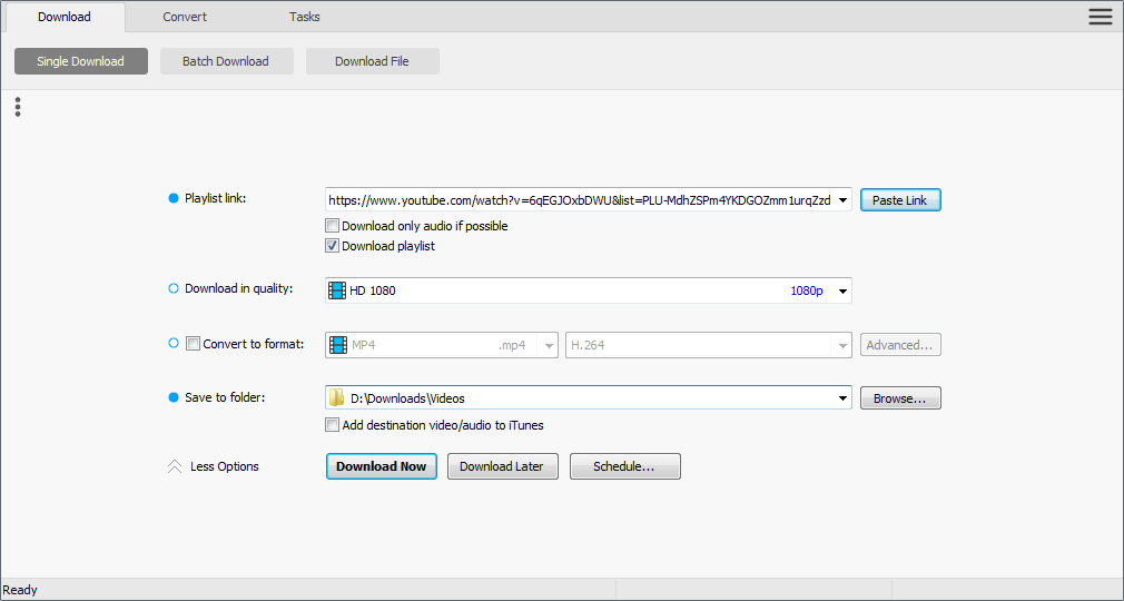 هذه هي الميزة “القاتلة” في النسخة Pro. إذا وجدت قائمة تشغيل تعليمية (كورس كامل) على يوتيوب مكونة من 50 فيديو، لن تضطر لنسخ رابط كل فيديو على حدة. ببساطة، انسخ رابط قائمة التشغيل، وسيقوم البرنامج بالتعرف على جميع الفيديوهات بداخلها، ويسمح لك باختيارها جميعاً وتحميلها دفعة واحدة بضغطة زر.